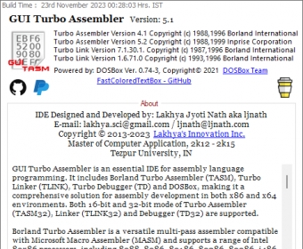 GUI Turbo Assembler is a 64-bit Multilingual IDE for Assembly Language powered by TASM & TLINK, offering a clean interface and robust toolset for any assembly source code. With one-click compiling to Windows executables, it’s ideal for users seeking the best assembly IDE for beginners, advanced assembly language development tools, and a reliable Windows 64-bit coding environment.