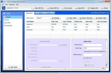 Lita (Lita.exe). Lita is a free and open source SQLite database administration tool for Windows.