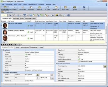 • Catalog complete employee profiles: personal data, company data, relatives, history, documents, equipment, qualifications, courses, certificates, knowledge, labor experience, contracts, salaries, fringe benefits.