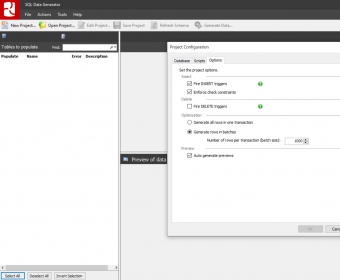 The application features a sleek, modern interface with a black-and-white theme, providing a clean and professional user experience. The well-sized menu icons and carefully chosen font style enhance usability, though there are no custom skin themes available. At high loads, some minor button lag may occur. Despite this, SQL Data Generator remains a highly effective solution for data creation.