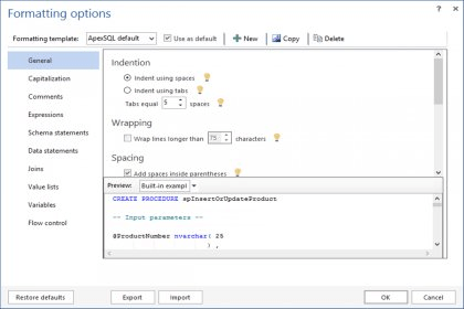 - Advanced SQL formatting with custom profiles you can create, share, and reuse.