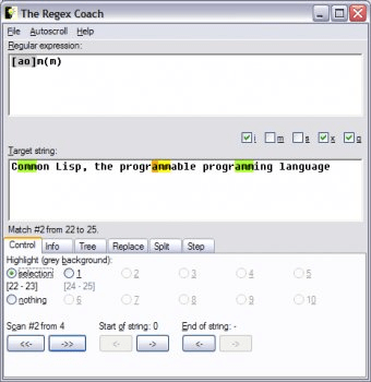The Regex Coach is an interactive graphical tool designed for experimenting with Perl-compatible regular expressions (regex) on Windows. Whether you're a beginner or an advanced user, this app provides a hands-on environment to understand how regex works. The intuitive interface allows you to see the immediate results of your regex queries and explore patterns interactively, making learning and debugging easier than ever.