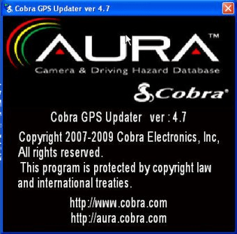 Cobra GPS Updater (Cobra GPS Updater.exe). The Cobra Aura database contains an extensive listing of redlight camera locations, speed traps...