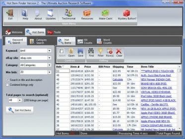 Hot Item Finder (HotItemFinder.exe) latest version ✅2.1.2, Use the keyword search option to quickly search 1 of 4 different eBay sites.