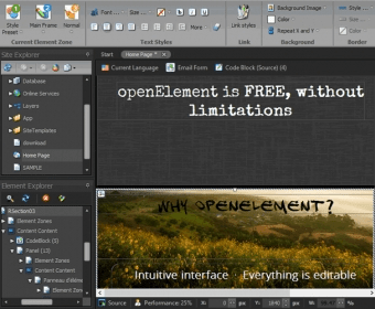 OpenElement (OpenElement.exe). 100% free and without ads, openElement is a complete web authoring solution for creative professionals.