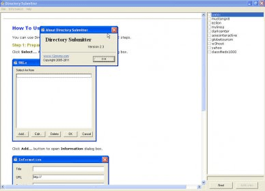 Directory Submitter (Directory Submitter.exe). Sutmitting your urls to more than 1700 directory sites semi-automatically.
