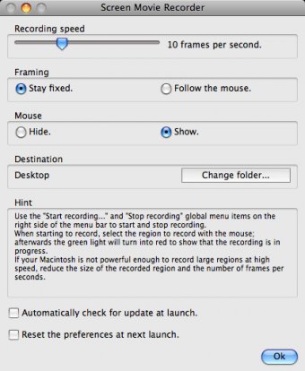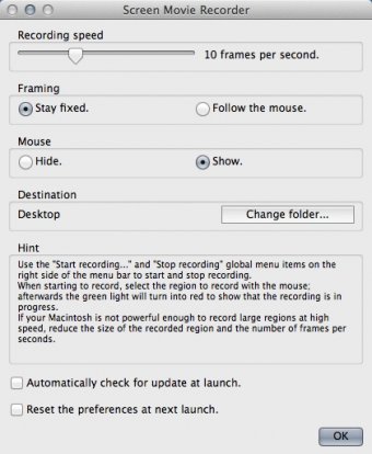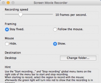 The program operates through a small menu in your Menu Bar, providing quick access to the Preferences panel and recording controls. Simply select the area you want to capture, and the app will start recording immediately. It also allows you to track your mouse on-screen during recording and offers the option to hide or display the mouse cursor in the final video. Although there is no visual representation of the recording boundaries during the capture, the utility delivers fast and smooth results in MOV format.