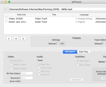 MP4Tools features two main modes: editing and converting. In editing mode, you can import files and take advantage of presets tailored to specific playback devices and media types. The tool also allows you to add important metadata like cast, director, and year when editing movies. In converting mode, you can choose specific audio and video tracks to extract, along with subtitle options, before finalizing the conversion process.