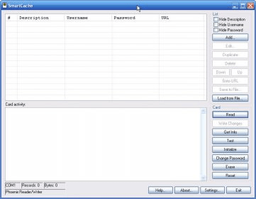 With support for both plain and encrypted RS-232 serial data interfaces, SmartCache adds multiple layers of protection—perfect for users seeking enhanced privacy, secure credential management, or a reliable encrypted storage method. Store up to 60 customizable records, each with fields for description, username, password, and URL. From website logins to credit card numbers and ATM PINs, SmartCache adapts to your workflow with flexible, device-ready data management. This tool also appeals to users searching for secure offline password storage, advanced smart-card utilities, or professional credential vault solutions.