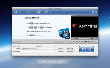 AnyMP4 MKV Converter delivers ultrafast MKV conversion with 100% original quality. Easily convert MKV to MP4, MOV, M4V, MPEG, AVI, FLV, WMV, TS, HD MP4, HD QuickTime MOV, and more. Use built-in editing tools to trim, crop, merge, adjust effects, and apply watermarks. After conversion, enjoy smooth playback on iPhone, iPad, iPod, and most digital players. This streamlined tool is ideal for users searching for reliable video editing software, professional video converter utilities, and high-resolution format optimization.