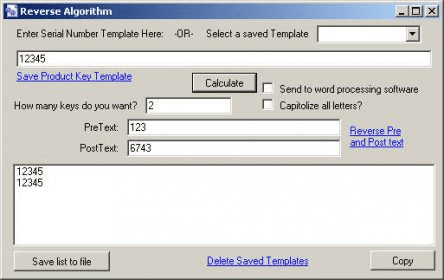 Reverse Algorithm delivers a clean, intuitive graphic user interface that lets you generate custom keys in seconds. Just input your serial number template, set the quantity, and define any pretext or post-text you want applied. With its streamlined workflow and smart layout, the app is designed for users who need quick output and dependable results.