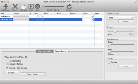 The latest version of MIDI to MP3 Converter is 7.0 on Mac Informer. It is a perfect match for Editors & Converters in the Audio & Video category.