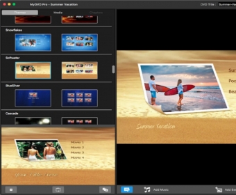 Choose from a rich library of themed templates, or personalize every element—from chapters and submenus to backgrounds and soundtracks. With the built-in WYSIWYG editor, you can preview menus exactly as they’ll appear on the finished disc. When ready, select your output format: DVD, AVCHD or BD, or save everything as an ISO disc image. MyDVD Pro supports both standard and HD output, making it a powerful choice for users searching for tools to create professional DVD menus or author Blu-ray content. Additional templates and the Blu-ray plug-in are available as in-app purchases on the Mac App Store.