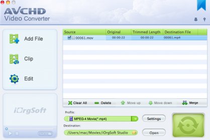 - Convert AVCHD to MP4, MOV, and many other popular formats on Mac - Batch convert multiple files with individual output profiles and settings - Built-in editor: trim, crop, split, watermark, and apply visual effects - Merge multiple clips into a single high-quality video file - Wide device & software support: Final Cut Express, QuickTime, Adobe Premiere Elements, phones, and tablets