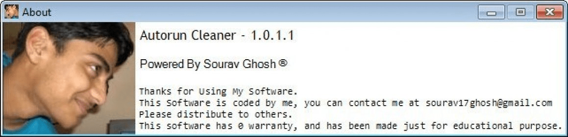 Autorun Cleaner (Autorun Cleaner 1.0.exe). Autorun Cleaner is a tiny program that doesn’t even have an interface.