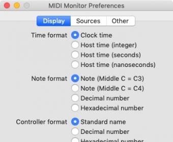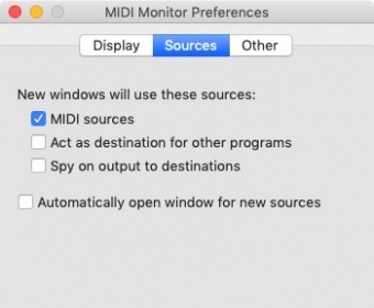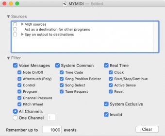 Each time you launch MIDI Monitor, a fresh document opens instantly. The main window keeps everything organized with three sections—Sources, Filters, and a detailed event panel. Expand Sources or Filters with a single click to choose exactly what you want to track. With filter categories covering voice messages, system common, and real-time data, plus deeper subfilters, you can quickly narrow down the stream to what matters. This makes it useful for complex studio routing, MIDI hardware testing, and accurate digital audio workflow analysis.
