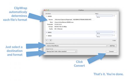 Work smoothly with HDV and AVCHD footage in M2T, MTS, or M2TS formats—even when they won’t play natively on Mac. ClipWrap lets you instantly re-wrap these files into MOV without re-encoding or quality loss, ideal for creators handling large 4K workflows, video editing for Mac, and professional post-production pipelines.