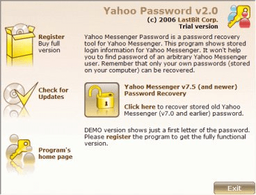 Yahoo Password (Yahoo Password.exe). LastBit Yahoo Password is an small password recovery application for getting back forgotten or lost passwords...